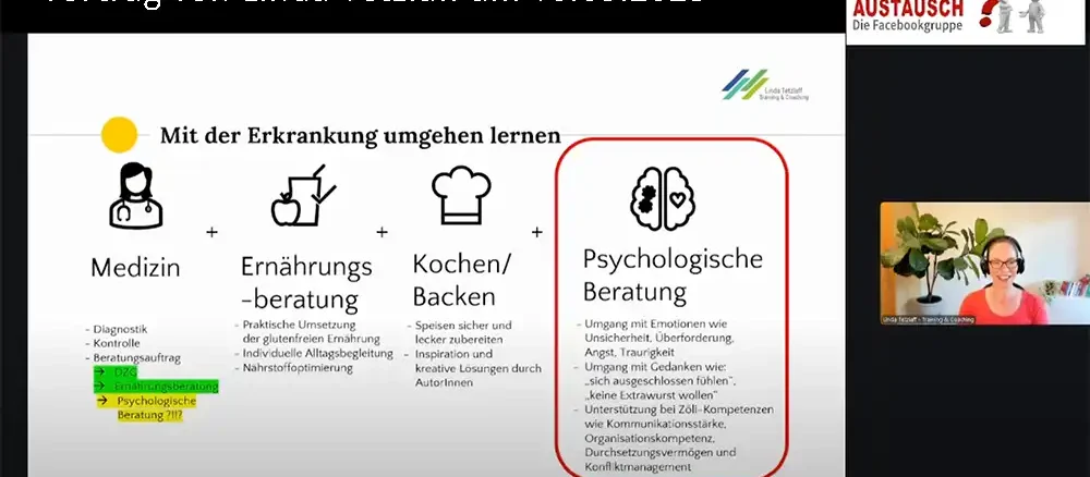 | Der emotionale Umgang mit Zöliakie während der Diäteinhaltung Link zum Vortrag bei Youtube: https://youtu.be/96NhJFLemS0 Die Diagnose Zöliakie bedeutet weit mehr als eine bloße Ernährungsumstellung... | |