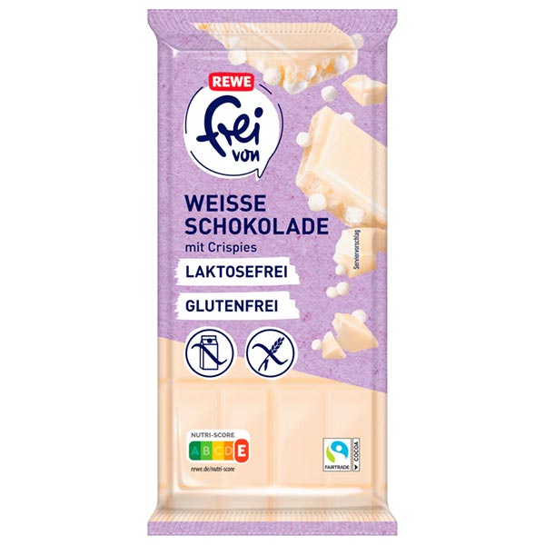 EUR 22.03.2024 REWE frei von glutenfreie Weiße Scholoklade mit Crispies
