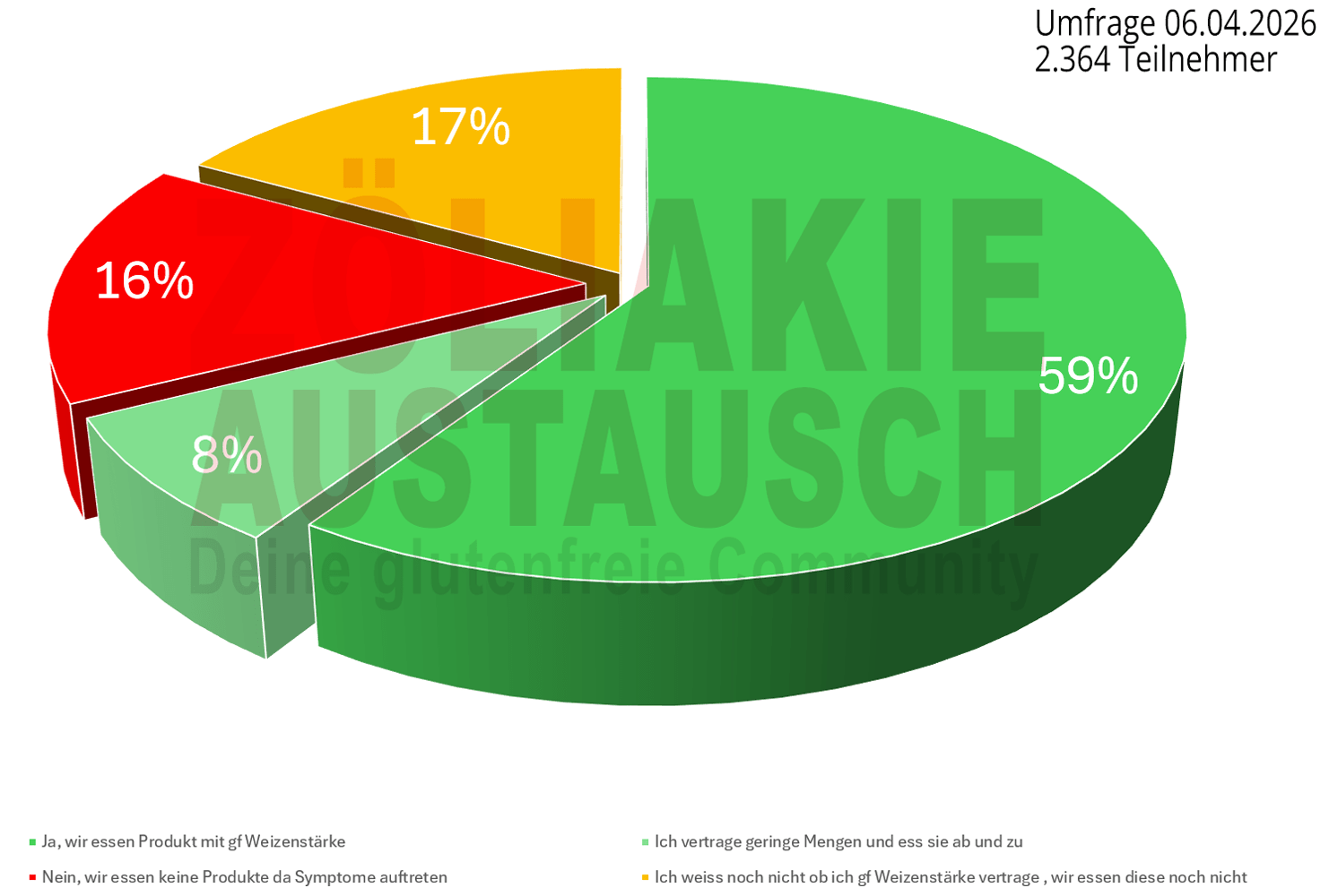 | Ja, wir essen Produkt mit gf Weizenstärke. | 1402 | 59 % |