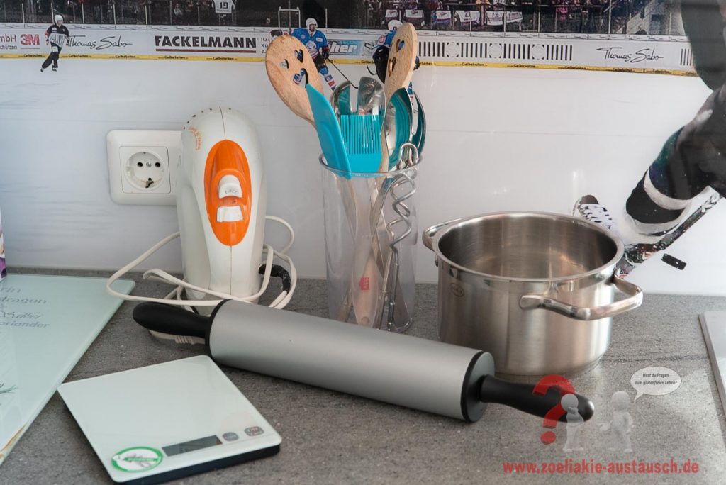 Währen die Röllchen nun gehen durften, hat Tanja einen Theorieteil mit den ebenfalls im Paket enthaltene Mehlen gemacht. Dabei wurde veranschaulicht wie unterschiedlich das Verhalten von verschiedenen glutenfreien Mehlen zusammen mit Wasser ist. Jeder hat so zu Hause erlebt was passiert, wenn man in einem Rezept NICHTS ändert 😉 – naja außer ein anderes Mehl nimmt … 😉