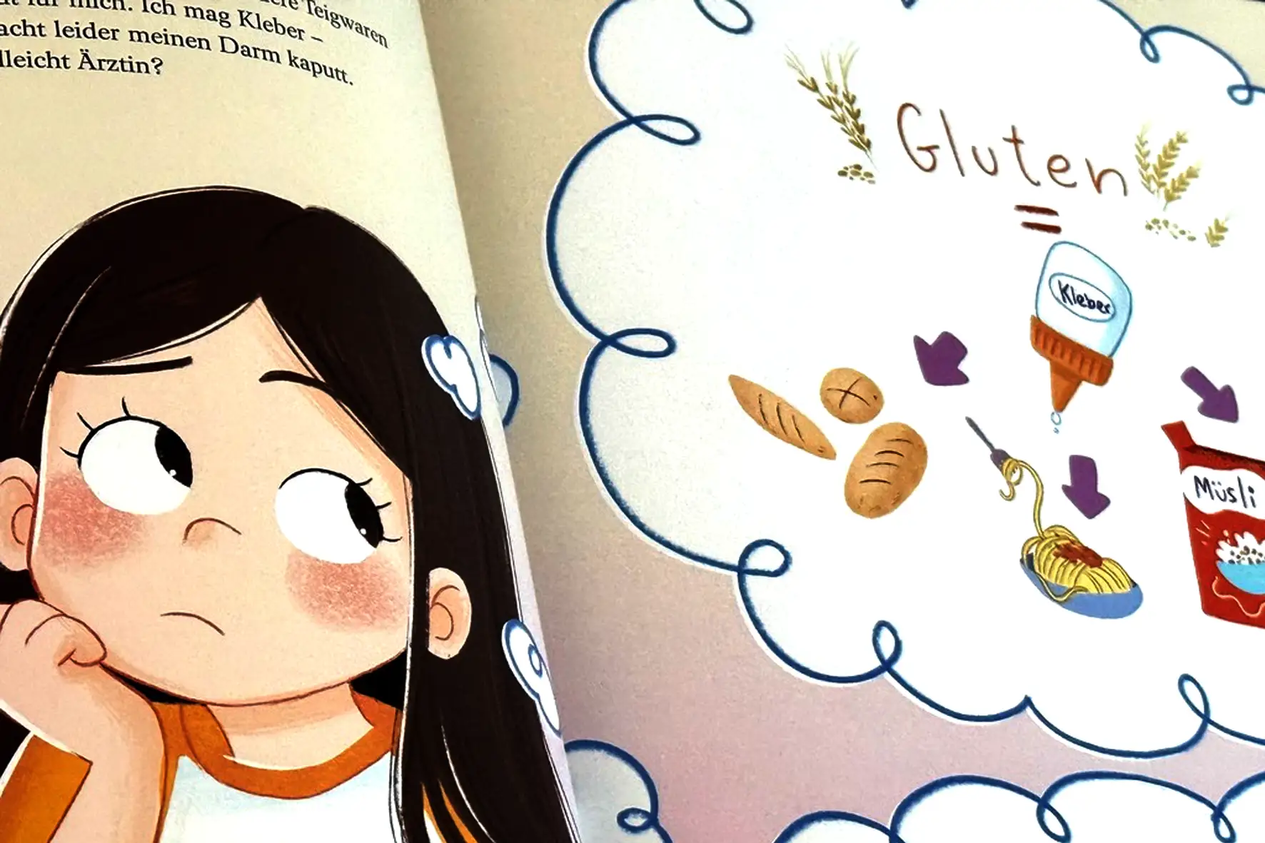 Unser Tipp: Nutzt die Geschichte, um mit euren Kindern über ihre eigenen „Frau Zöliakie“-Momente zu sprechen. Es nimmt den Schrecken und macht aus einer Krankheit eine mutige Mission.