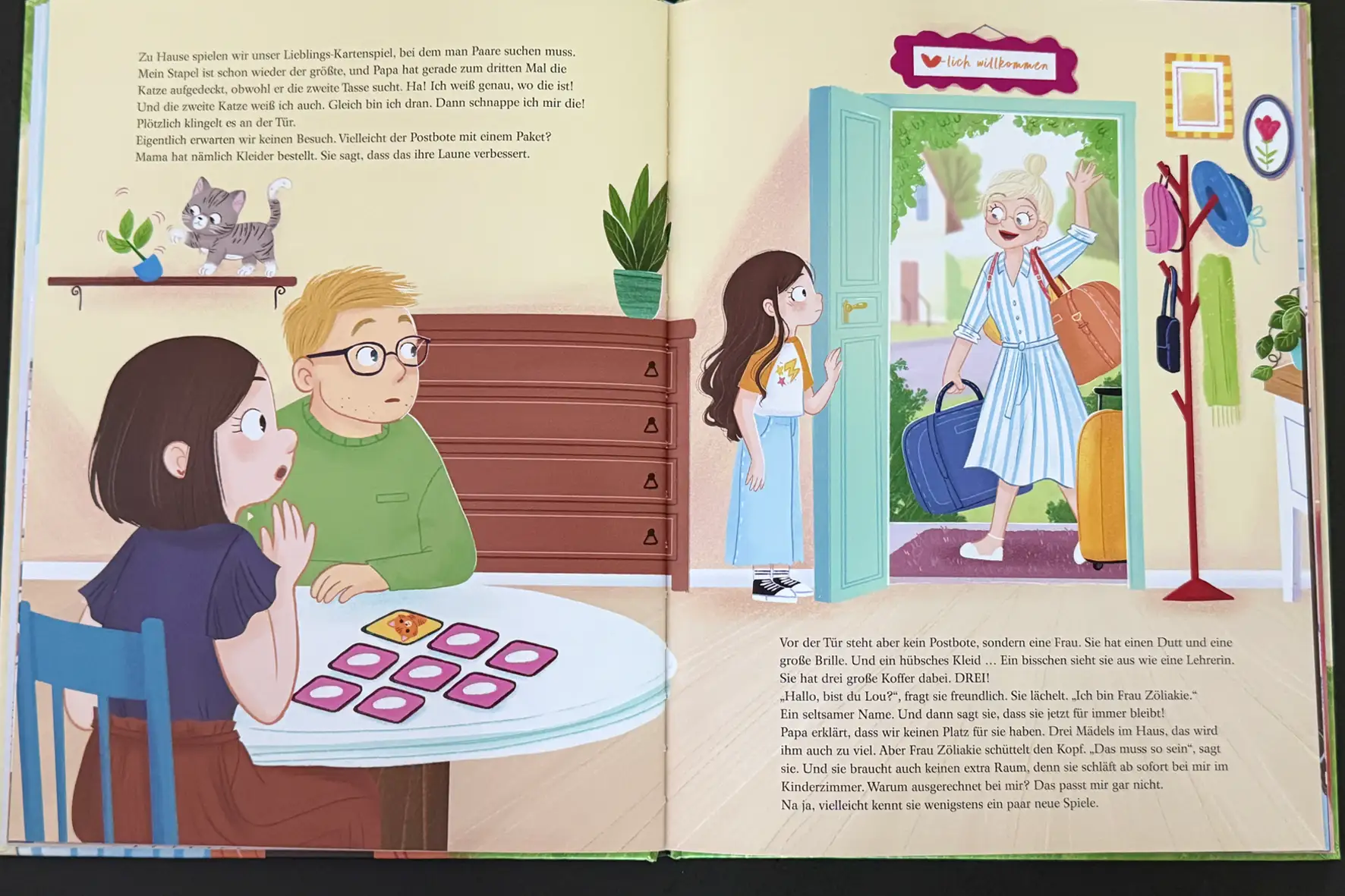 Nach einem Besuch beim Kinderarzt und einer Blutuntersuchung passiert etwas Merkwürdiges. Es klingelt an der Tür, und dort steht eine Frau mit Dutt, großer Brille und drei riesigen Koffern: Frau Zöliakie. Sie verkündet kurz und knapp, dass sie von nun an für immer bleiben wird – und zwar direkt in Lous Kinderzimmer.