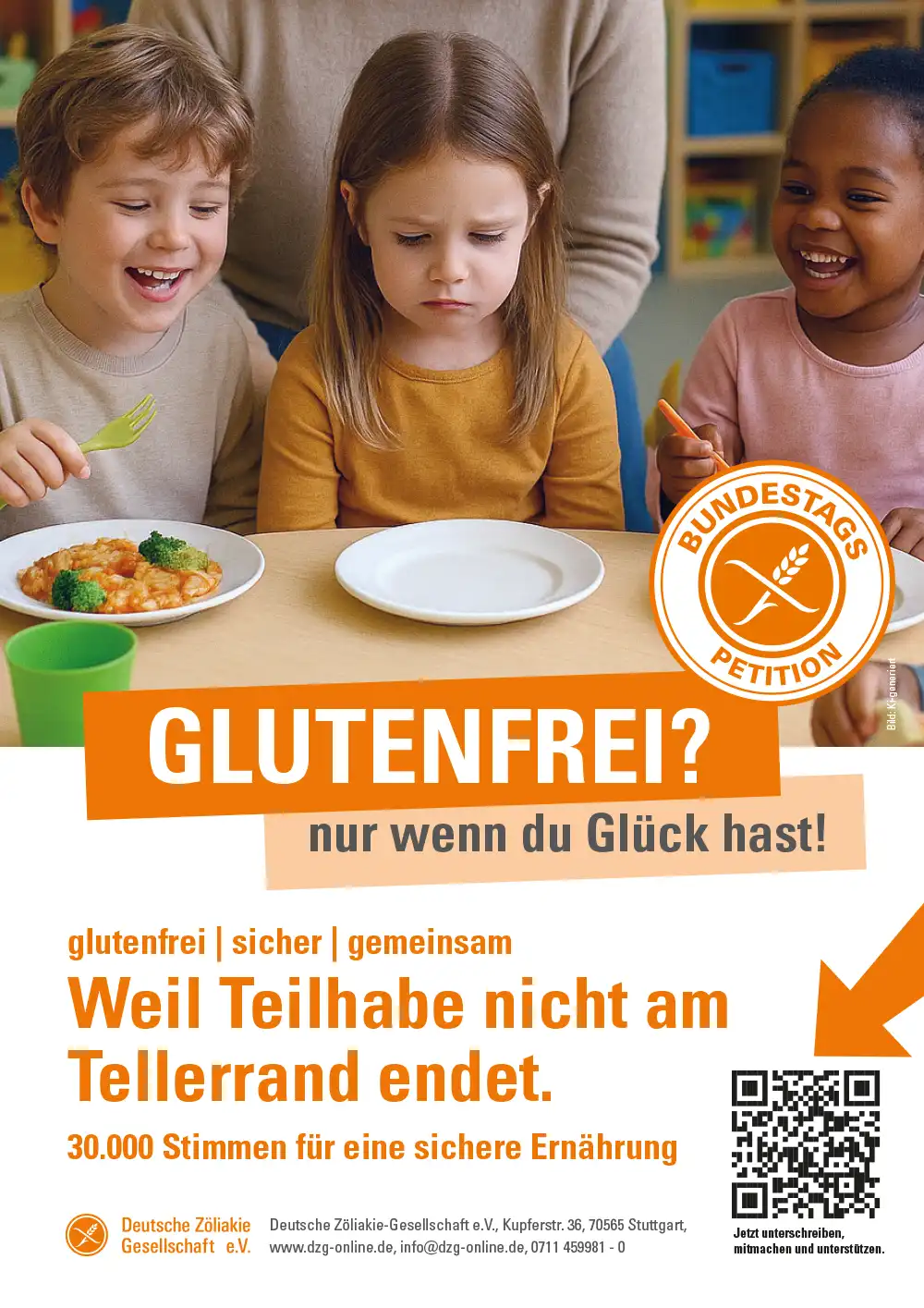 Menschen mit Zöliakie stoßen tagtäglich auf zahlreiche Hürden, da es bislang weder gesetzliche Regelungen noch Verantwortliche gibt, die ihre Inklusion sicherstellen. So wird ihre Teilhabe am gesellschaftlichen Leben erheblich eingeschränkt. Selbst in öffentlichen Gemeinschaftseinrichtungen wie Kitas, Schulen, Universitäten, Heimen, Krankenhäusern oder Werkstätten fehlt fast immer ein sicheres glutenfreies Essensangebot. Betroffene müssen daher meist ihr eigenes Essen mitbringen, erleben dadurch häufig Ausgrenzung und essen infolgedessen allein – teils sogar aus Hygiene- oder Haftungsgründen räumlich getrennt. Zudem können insbesondere junge, alte und kranke Menschen die Organisation ihrer Verpflegung nicht selbst leisten. Essen ist nicht nur lebensnotwendig, sondern auch ein wichtiger Teil sozialer Gemeinschaft. Ohne ein Essensangebot werden deshalb Kinder mit Zöliakie ausgeschlossen, Senioren finden kein geeignetes Pflegeheim, und selbst Kliniken bieten häufig keine sichere glutenfreie Verpflegung an. Dies alles widerspricht dem Gedanken der Inklusion und Teilhabe. Zöliakie ist eine anerkannte Behinderung – nach Artikel 3 des Grundgesetztes darf niemand deswegen benachteiligt werden.