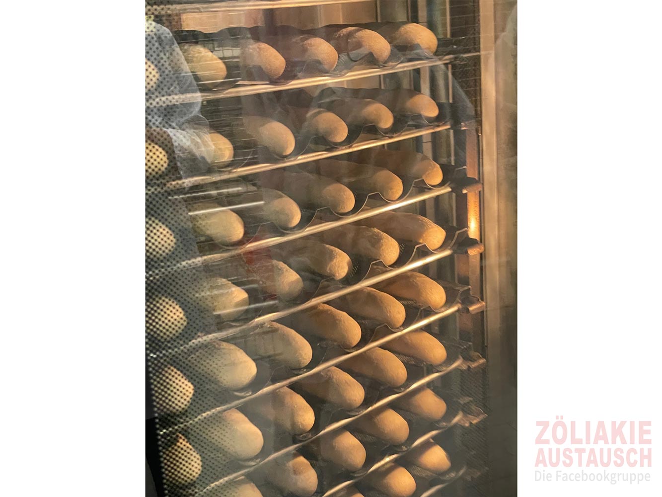Als nächsten Schritt geht es für die Teiglinge in den Gärschrank zum Aufgehen. Und anschließend direkt in den Ofen. Dabei hat jedes Produkt ein eigenes Backprogramm. Da noch viel in Handarbeit gefertigt wird, ist es möglich, ein vielfältiges Sortiment anzubieten. Auch innerhalb der Backwaren sind unterschiedliche Produktionsschritte notwendig. Das Schnittbrot wird in speziellen Pasteurisierungsöfen hergestellt, um eine möglichst lange Haltbarkeit zu erzeugen. An diversen Stellen während des Herstellungsprozesses finden immer wieder Qualitätskontrollen statt.
