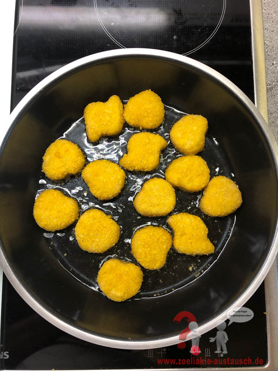 Man kann die Produkte im Backofen, in der Pfanne, der Friteuse oder auch in einer Heissluftfriteuse zubereiten. Wir haben eine Pfanne mit heißen Fett genutzt