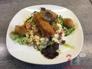 Wir hatten die Chicken Nuggets (Kipnuggets), vegane Gemüse Bitterballen, Rindfleisch Kroketten, Röstzwiebel, Paniermehl und Schnitzel.